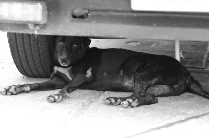 Shoo the dog away if he is sleeping underneath your car, lest you drive over him and crush its bones (Courtesy: http://www.bkkpetfoto.com)