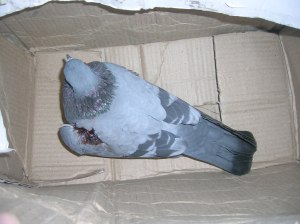 In the carton: Pigeon with kite string injuried rescued from CU block at Pitampura