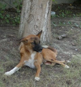 Then there was the dog whose eyes were bleeding. We were to take him to hospital, but he was in a panic and rushed here and there. The young men who were trying to catch him finally succeeded. But in the meantime, a crowd had gathered, laughing and cheering.