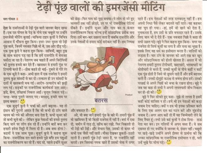 टेढ़ी पूँछ वाला जानवर केवल पुचकार का भूखा है, पर हमारे यह राजनेता सत्ता, रुतबा, धन दौलत और ना जाने और किस किस चीज़ की कभी न भरने वाली भूख रखते हैं…..